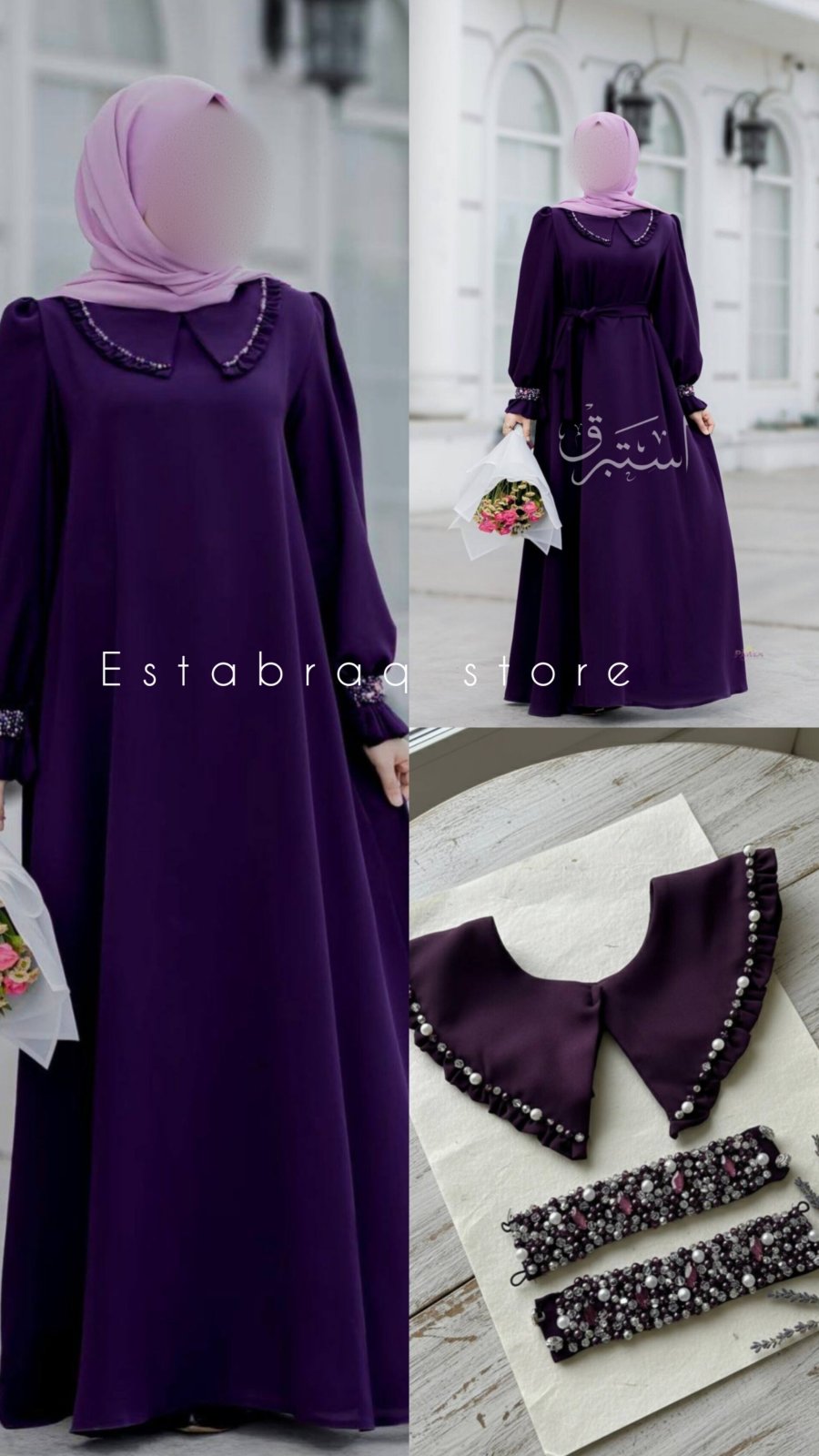 ✔ قماش فاخر: حرير دبي الناعم، خفيف ومناسب للاستخدام اليومي أو المناسبات مع اكسسوار على الكم والقبة